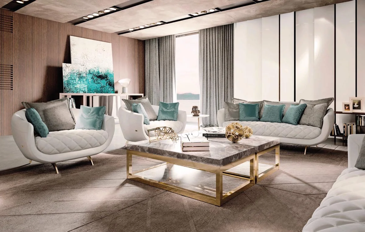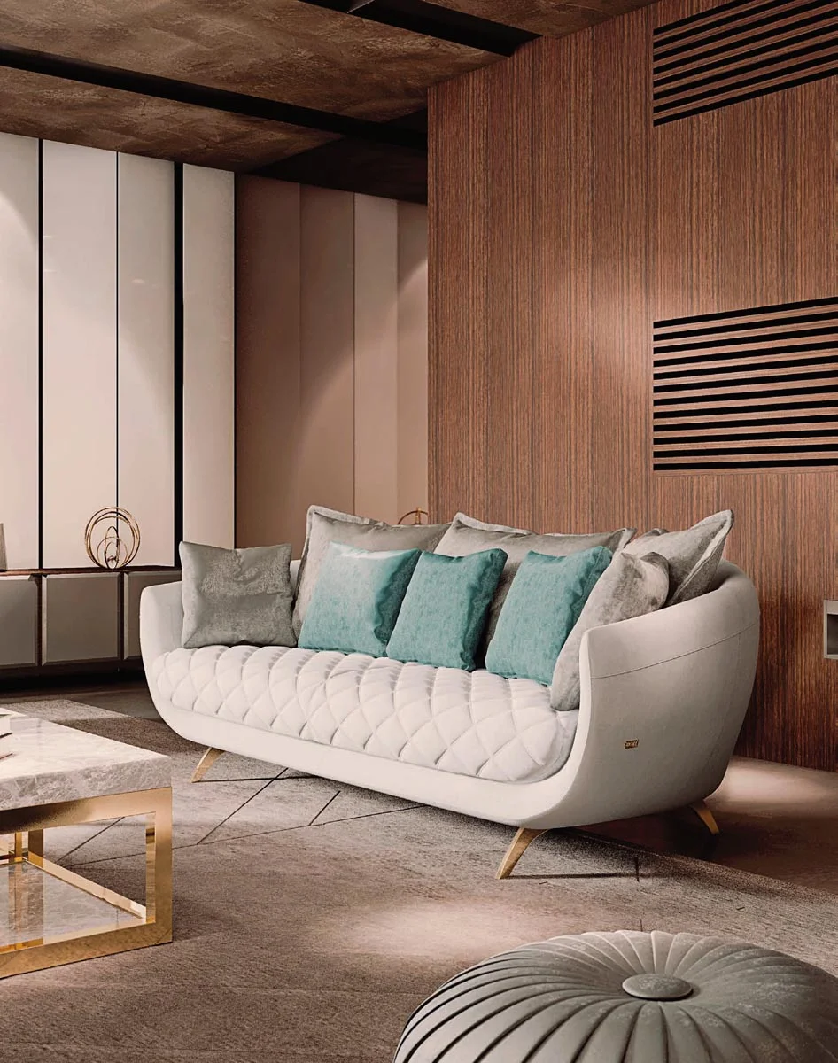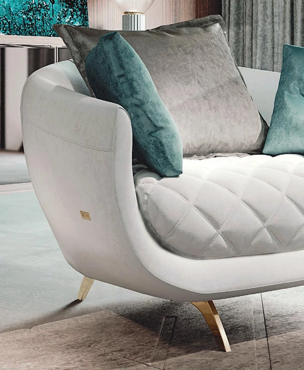 Non-deformable polyurethane foam padding in different densities. Feather back and side cushions are standard.