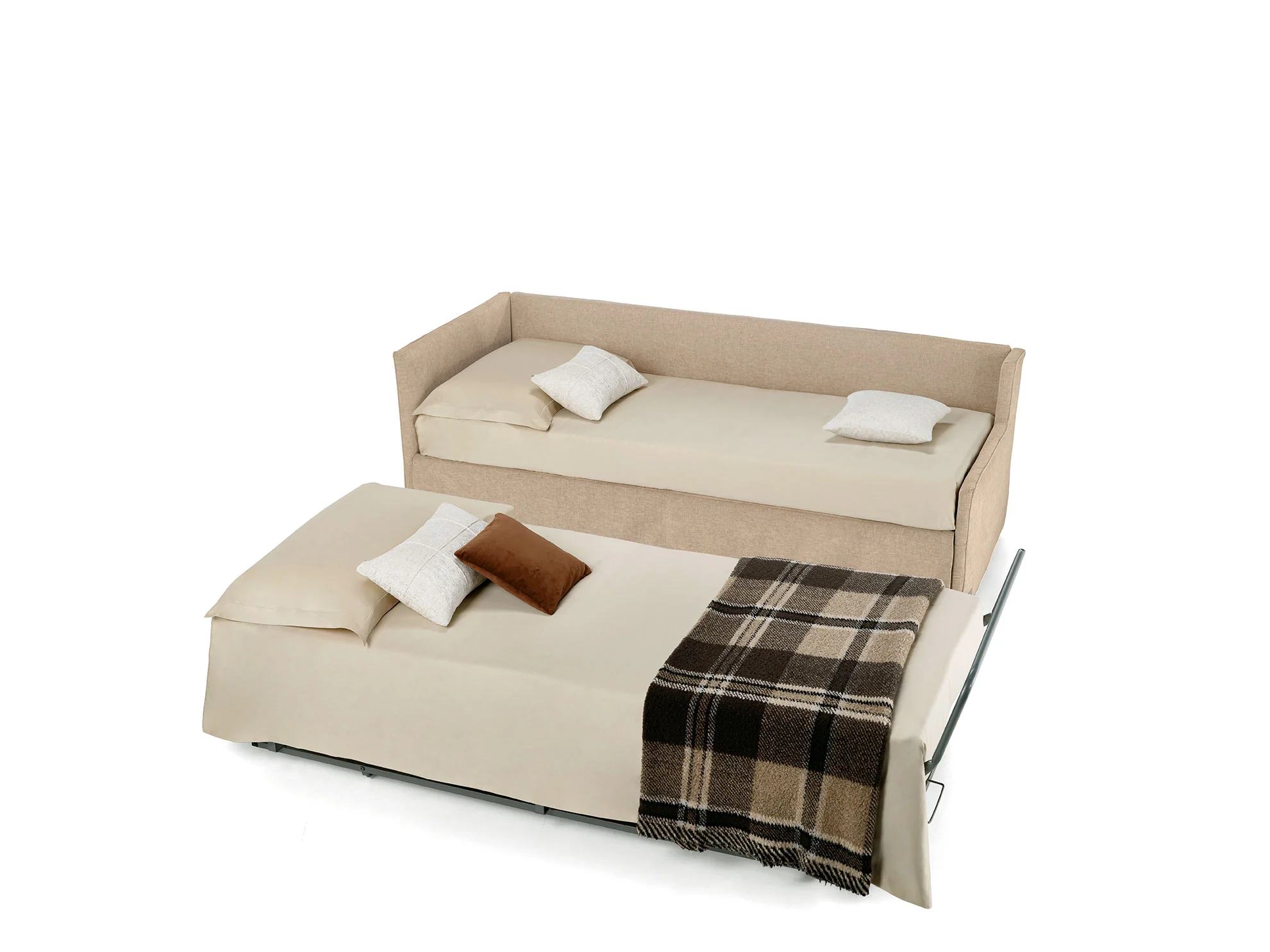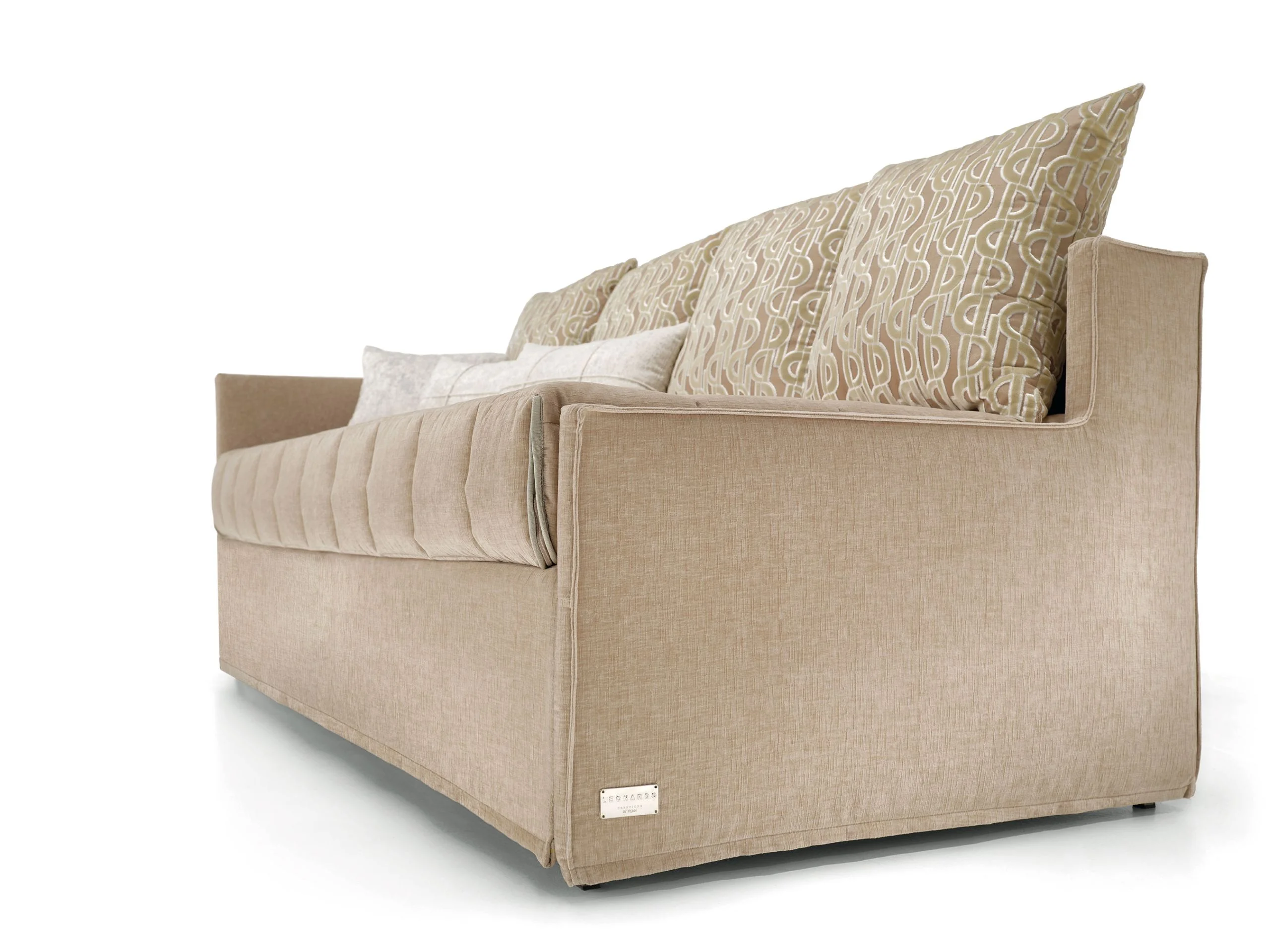 Polyurethane foam mattress h 16 cm. Feather filled cushions are standard.