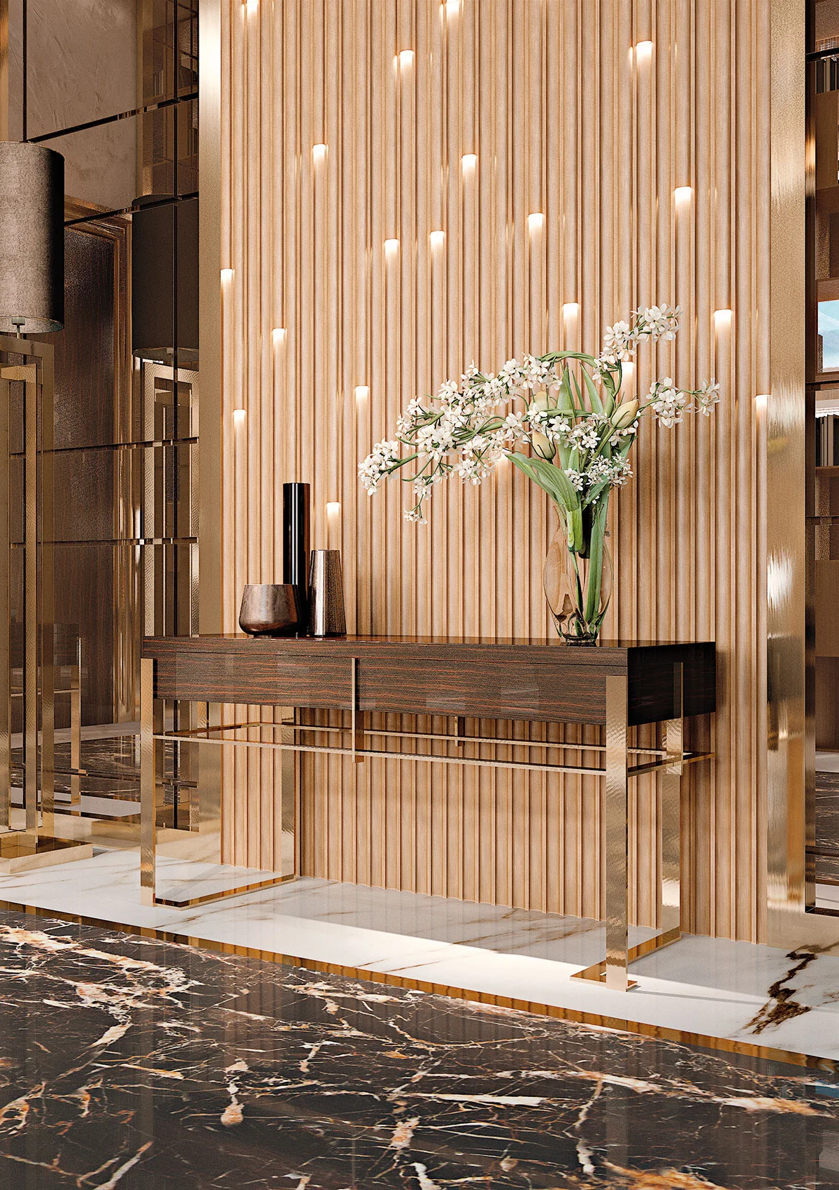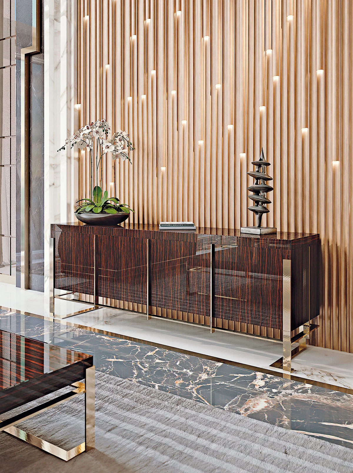 GLI ARREDI Spruce blockboard structure veneered in ebony veneer The interior is veneered in Tanganyika veneer. For different finishes and colours, see colour chart. The matt brushed steel frame is standard. For different finishes, see price list for surcharge. Technical Data Sheet