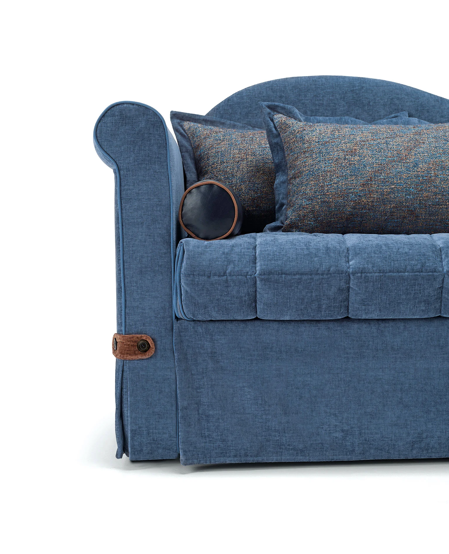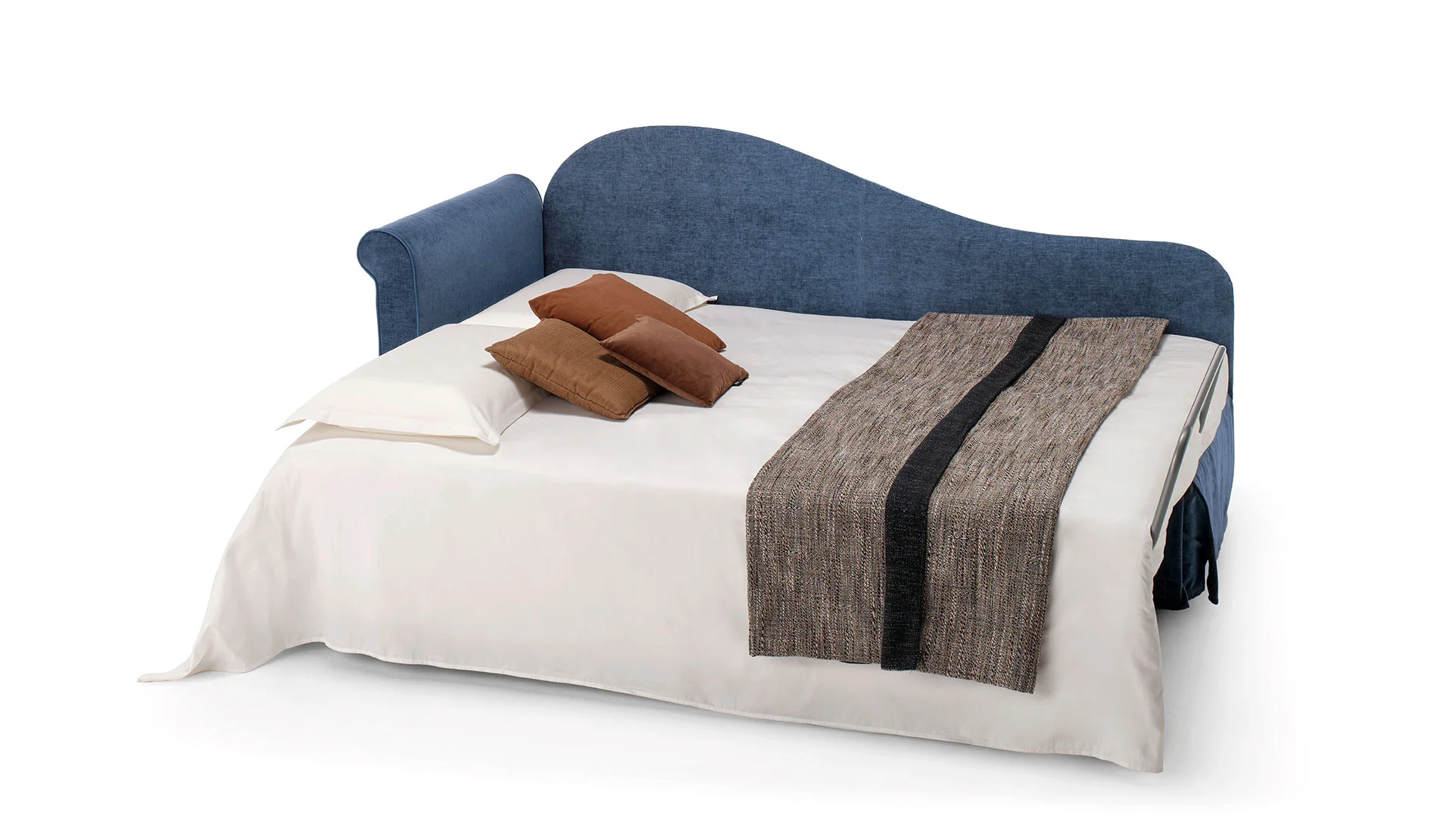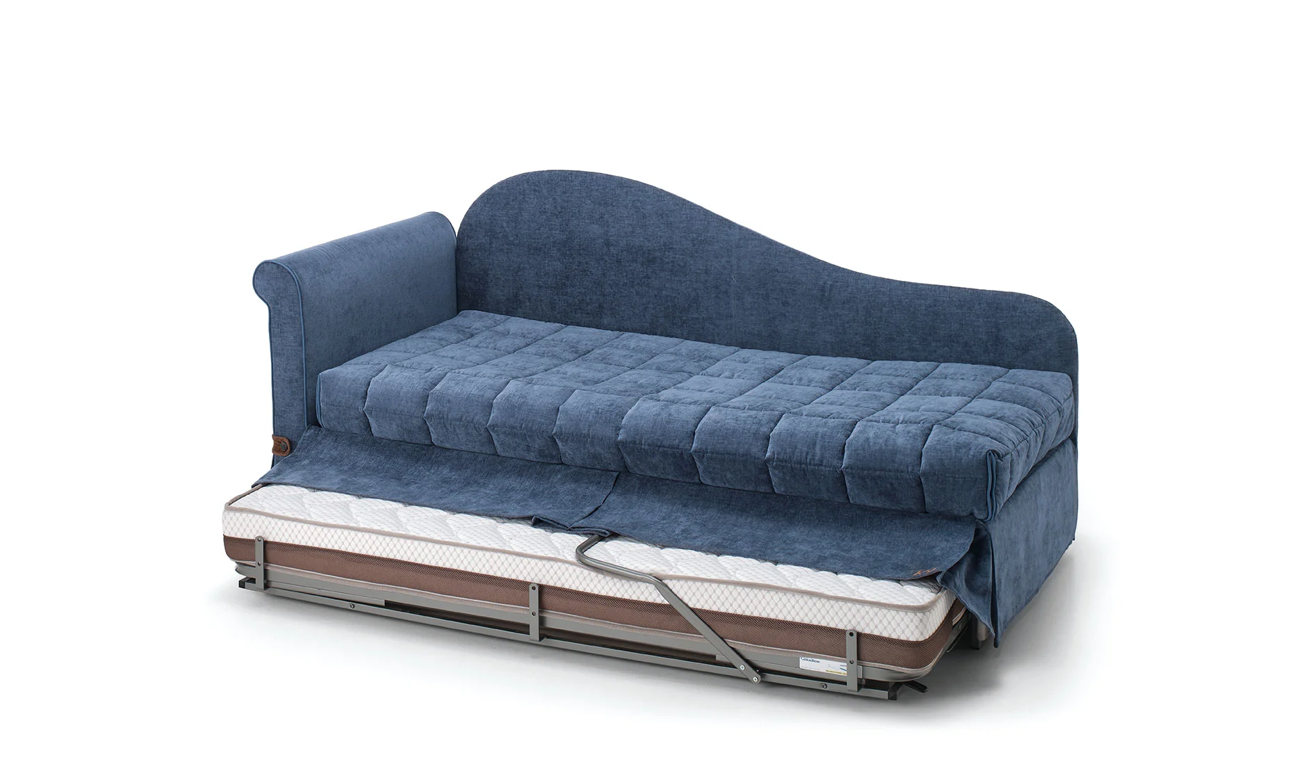ISABEL Sofa bed with completely removable cover Frame, armrests and backrest in spruce and poplar plywood anchored to an electrowelded metal net as standard. Non-deformable polyurethane foam padding in different densities. Spring seat cushions with Soft System type.Polyurethane foam mattress h 16 cm.Down-filled cushions are standard. KK logo embroidery included in the price. Technical Data Sheet