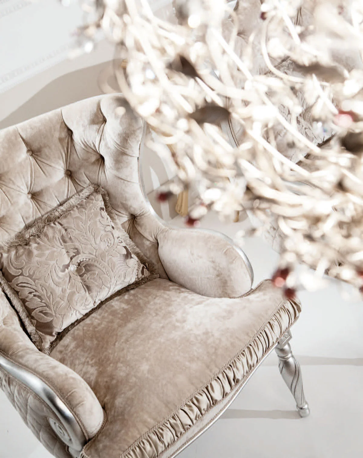 I preziosi intarsi e le volute armoniose, evocano il paziente e rassicurante lavoro artigianale che è patrimonio vivo e presente nelle nostre creazioni.