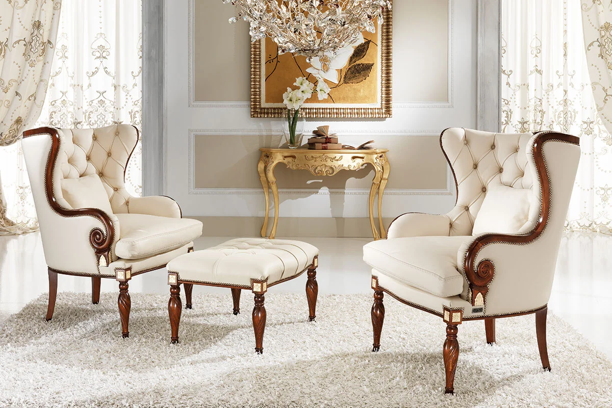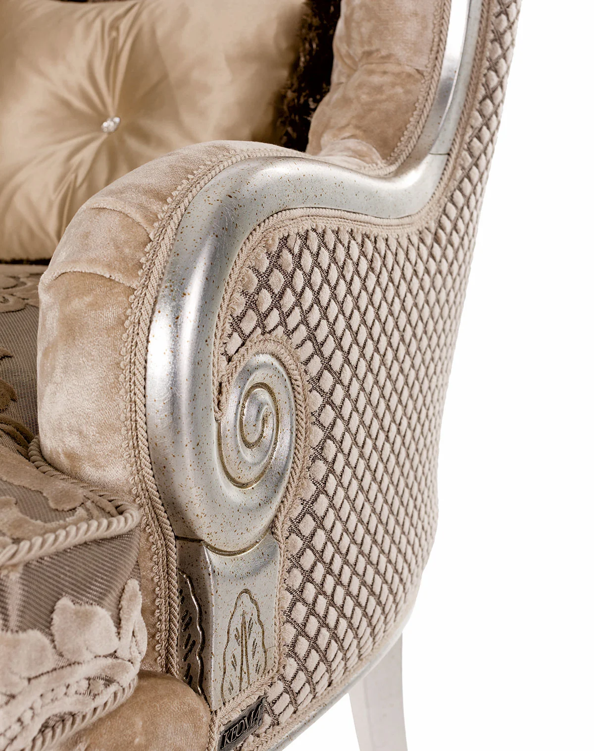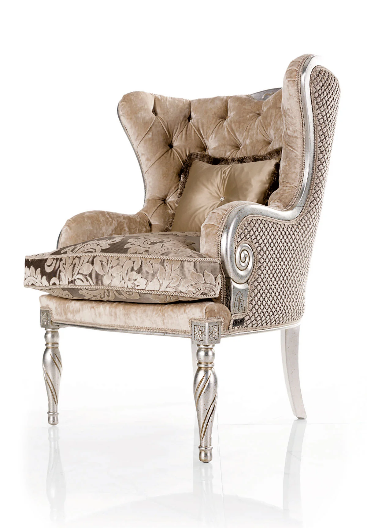 Armchair with beechwood frame with hand-carved and hand-finished parts