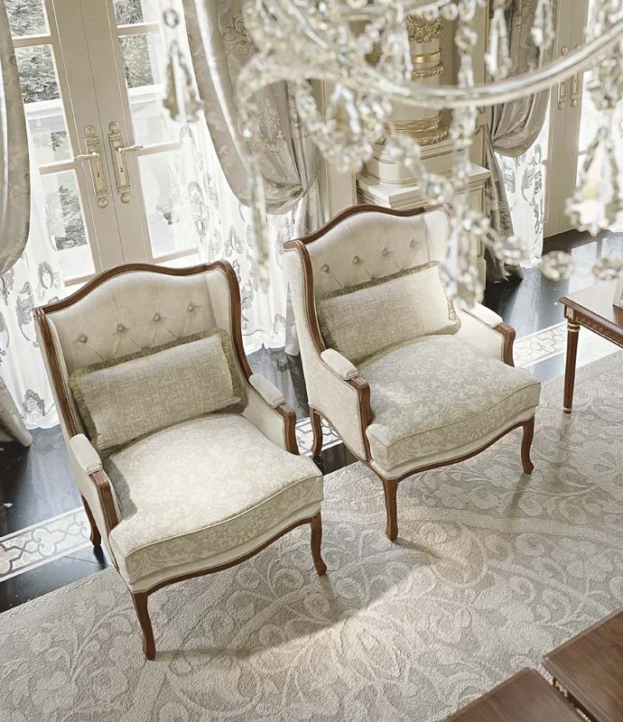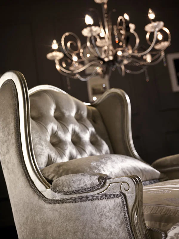 Il segreto del fascino senza tempo, racchiuso nelle finiture esclusive, nei decori eseguiti a mano, che insieme al comfort delle sedute rappresentano l'essenza stessa dell'artigianalità che si può ammirare in questa poltroncina all'intramontabile appeal